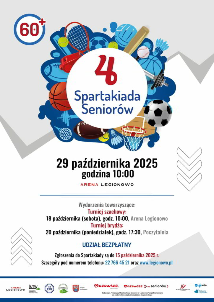 Zapraszamy na 4. Spartakiadę Seniorów, która odbędzie się 29 października w Legionowie. Start o 10:00 w Arenie Legionowo.